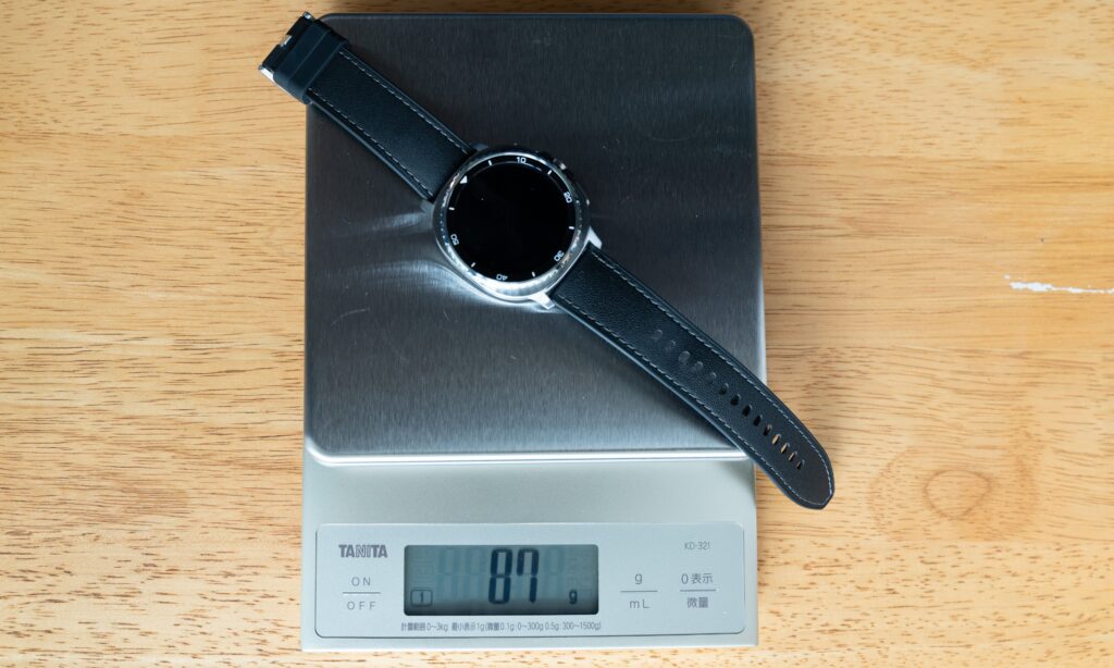 素材にステンレススチールを使用しているためか、重さは87gとスマートウォッチにしてはまあまあ重ためです。ただ、思った以上に装着した時のずっしり感はありませんでした。