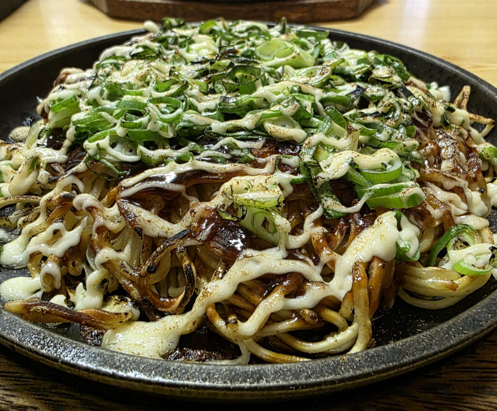 広島といえばお好み焼き!ということで、お好み焼きを食べることにしました。ちょうど広島に友達が住んでいるので、友達おすすめのお好み焼き屋へ。今回は府中焼きという種類のお好み焼きで炙りネギマヨという味を食べました(980円)。葱の味とマヨネーズが絡み合ってとてもおいしかったです。