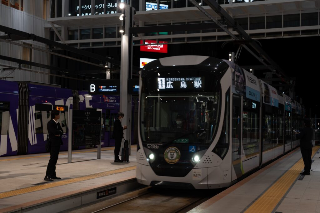 びっくりしたのが路面電車が駅に乗り入れていることで、広島駅を出ずに路面電車に乗られるようになっていました。これなら雨の日でも濡れずに列車に乗ることができるので「考えられてるな」と感心しました。