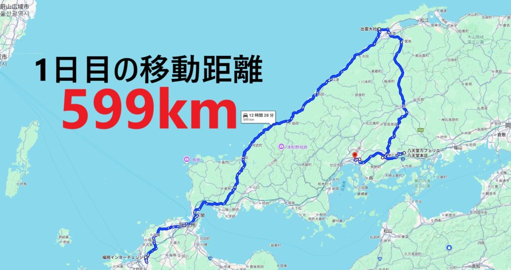 1日目の移動距離は599km