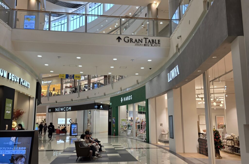 そして中に入ってみると、ほんとうに広くてかなりの時間を潰せそうなくらいでした。本屋さんや服屋さん、家電量販店などたくさんのお店があるので、日常の買い物もここでなんとかなりそうな感じでした。