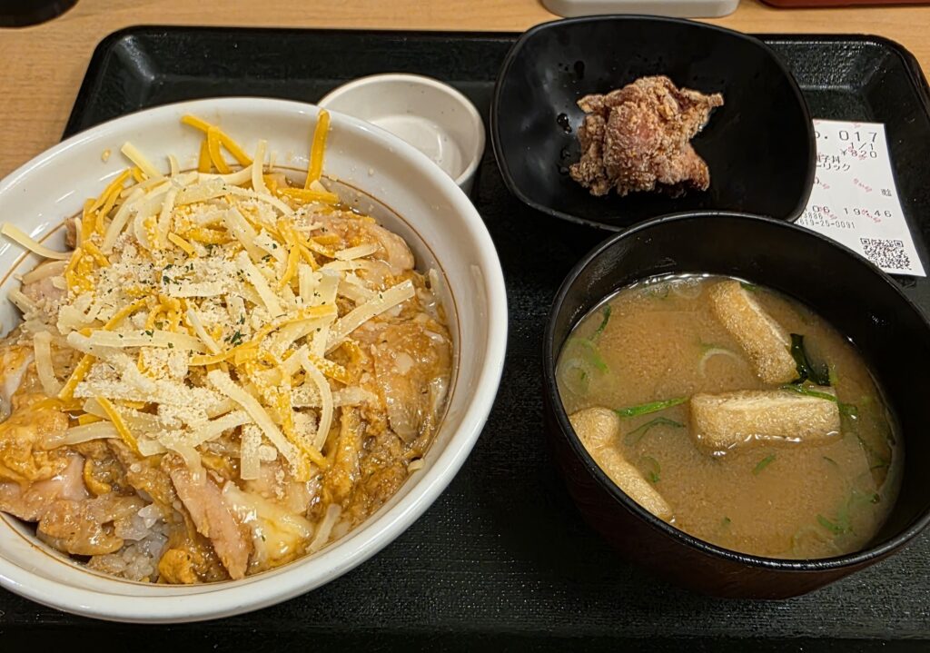 夜もお好み焼きを食べるつもりでいましたが、パンケーキが消化しきれていなかったので食事としては軽めの親子丼を食べることにしました。安くて早くておいしいので、けっこう気に入っています。