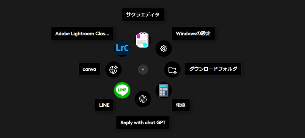 今回のMX Master 4からマウスにもActions Ringに搭載されてマウスに割り当てられる機能がさらに増えました。Actions Ringとはリング状に8つのボタンが表示されてそれぞれにショートカットなどの機能を割り当てることができるものです。