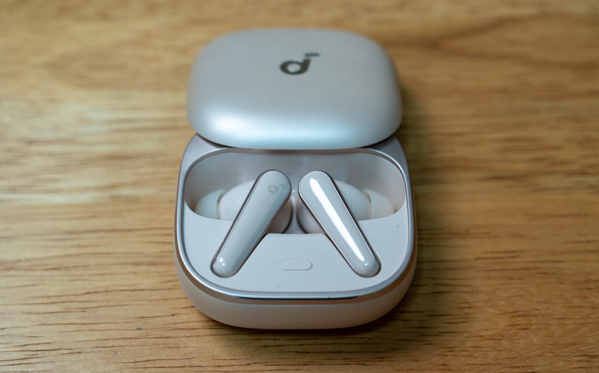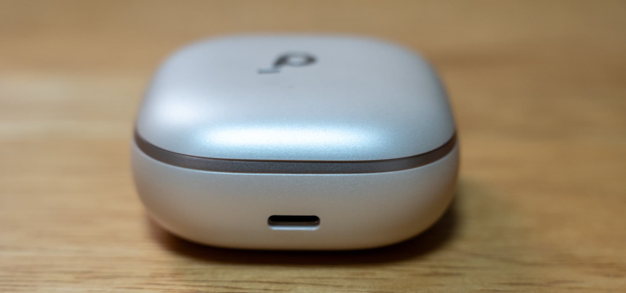 まずは真上&正面から。soundcoreのロゴが書かれています。