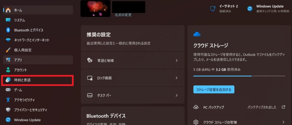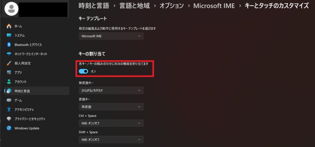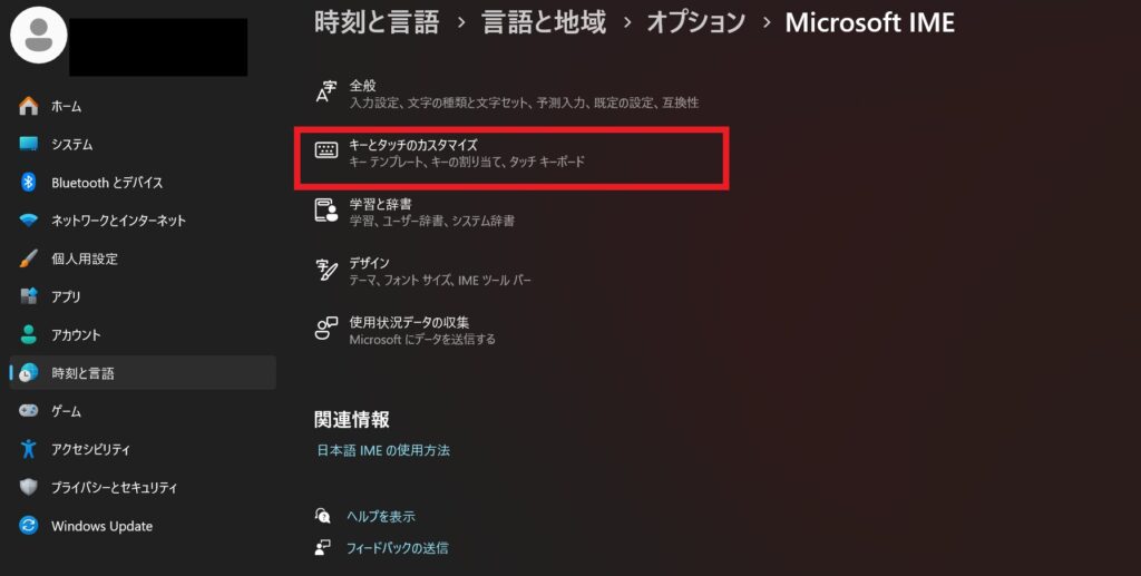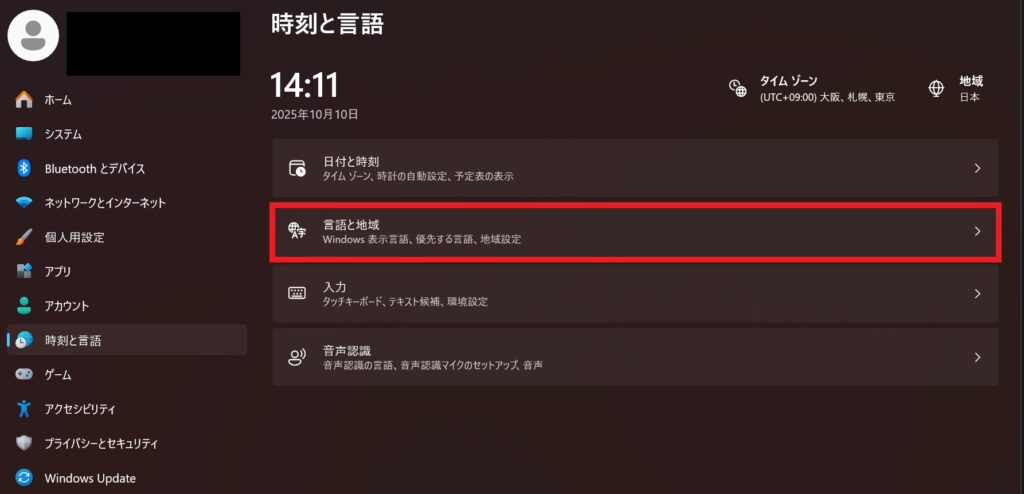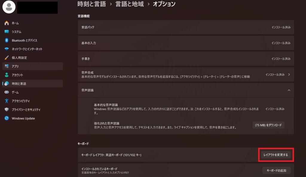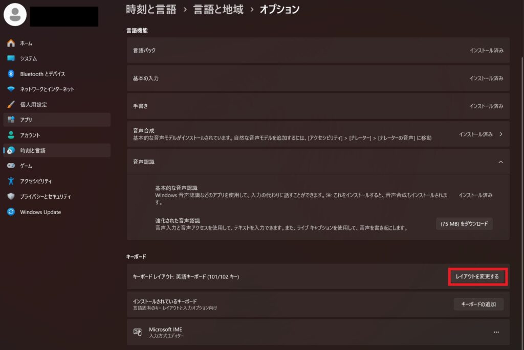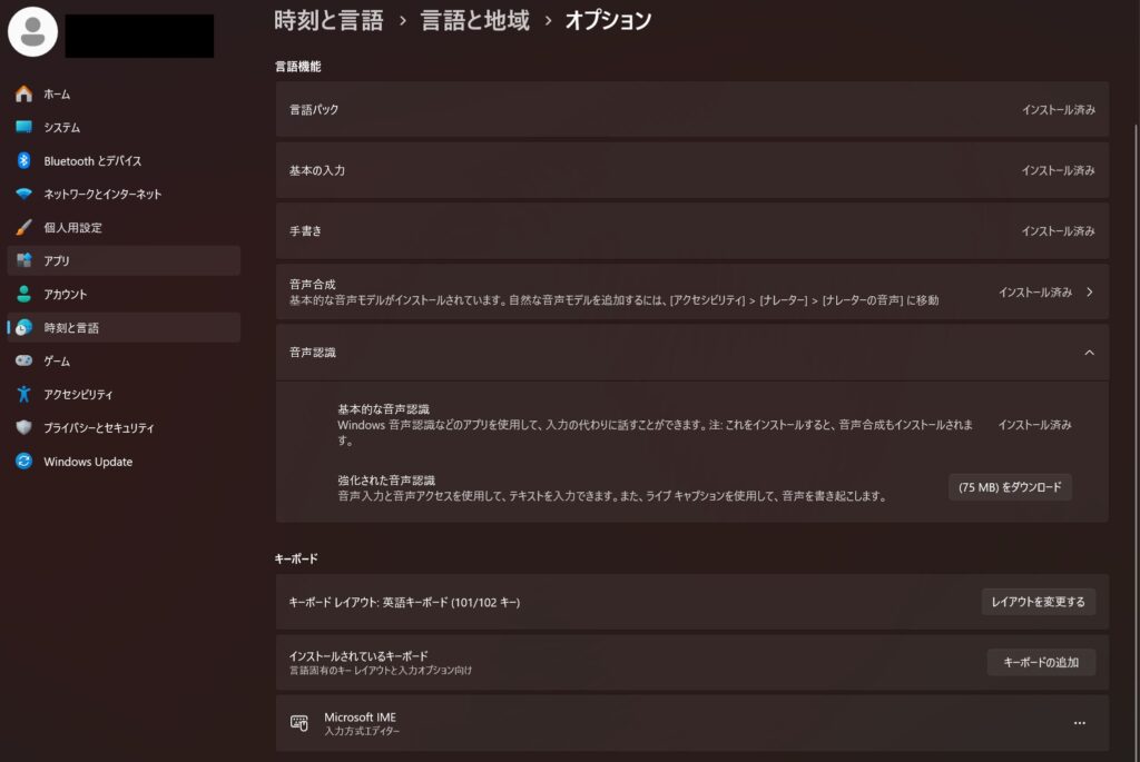 設定 > 時刻と言語 > 言語と地域 >(日本語の)言語のオプション